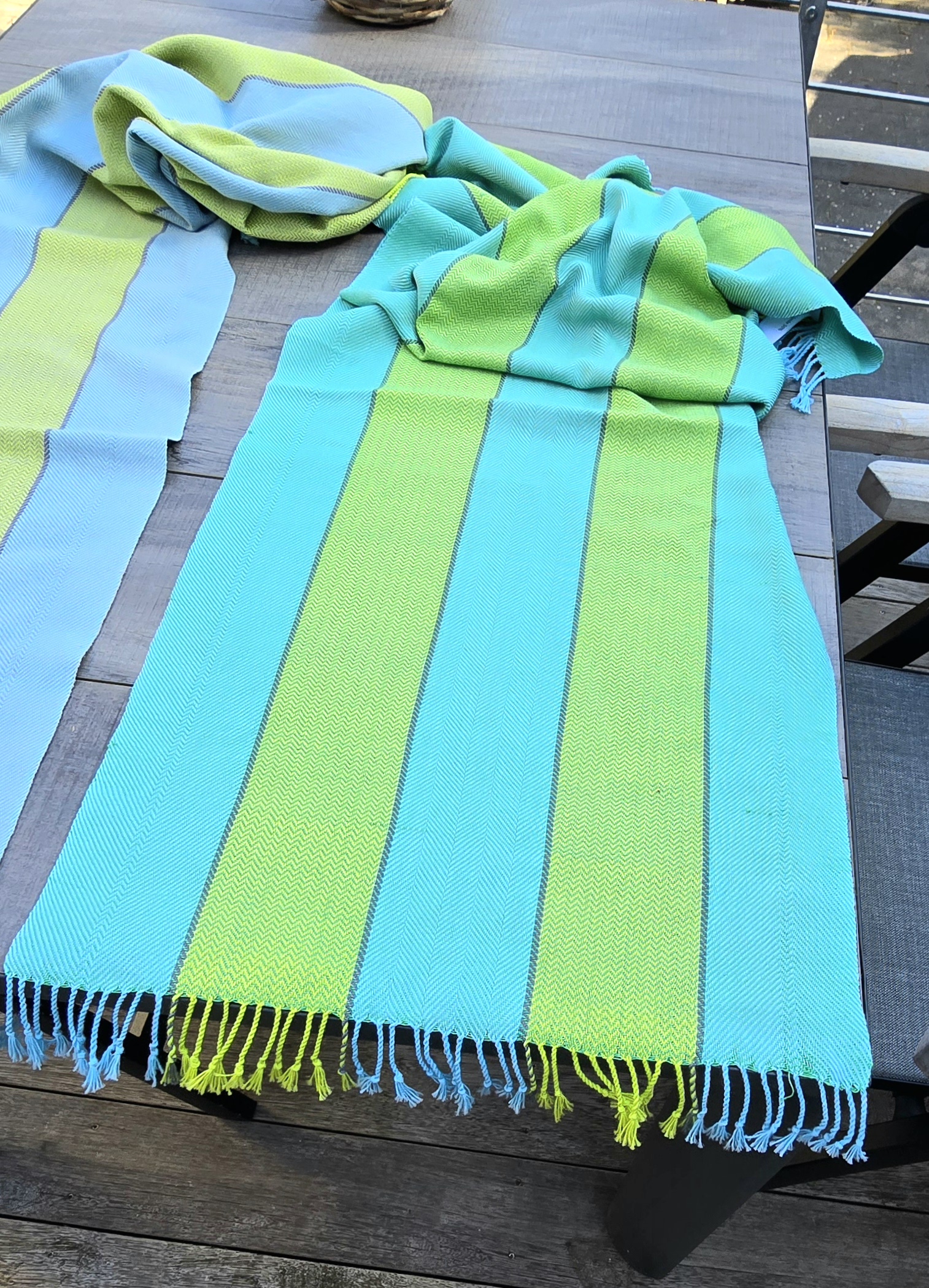 Ich fertige meine Gewebe für all diejenigen, die sich von handgemachten Unikaten vom Webstuhl begeistern lassen möchten. Genauigkeit, die ich viele Jahre lang entwickelt habe, ist für mich bei der Planung wie auch bei der Herstellung neuer Gewebe von Vorteil. Hierbei kommt es auf die Entscheidungen für Material, Bindung, Dichte, Farben und Ausrüstung besonders an, um ein gelungenes Stück herzustellen.